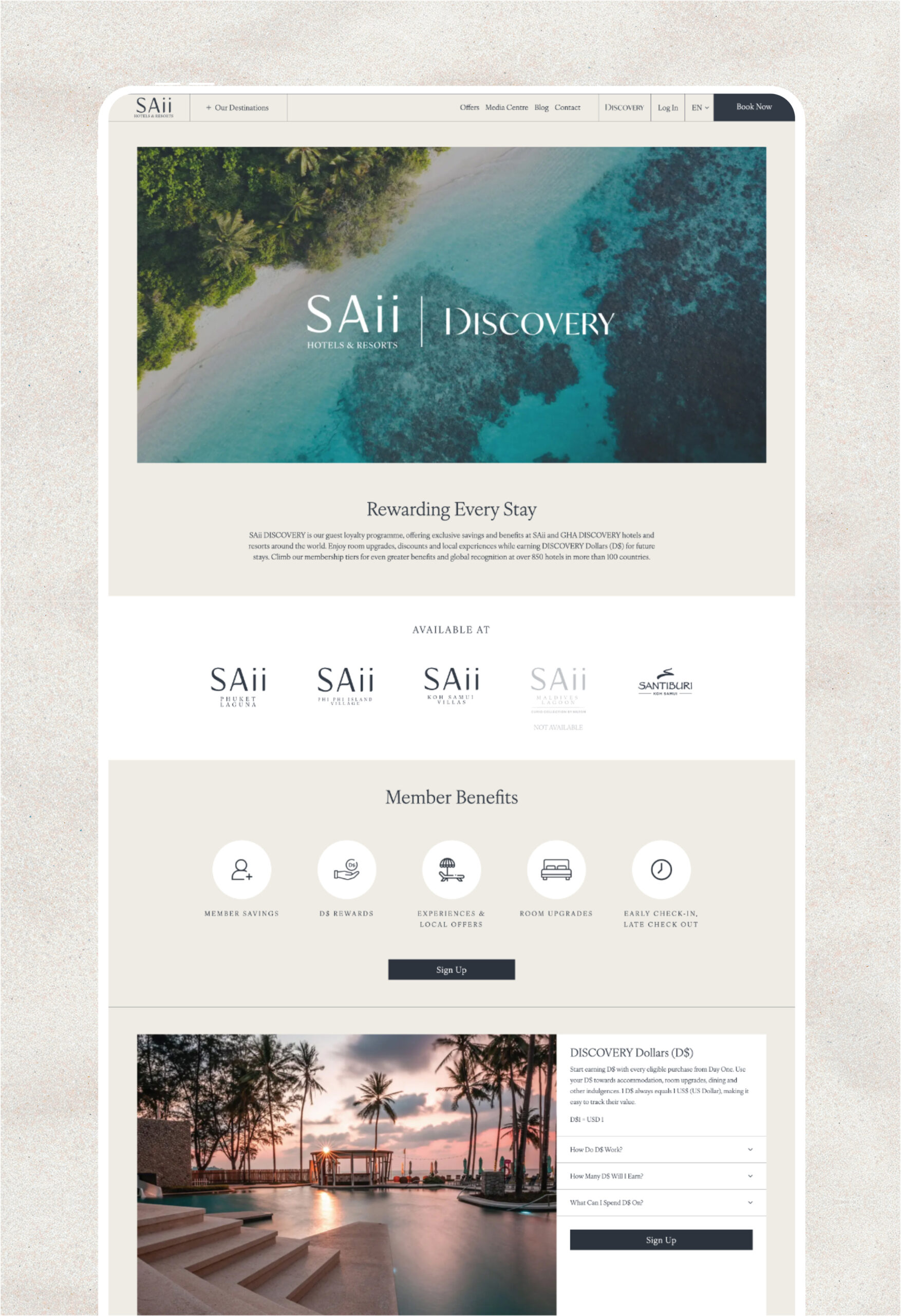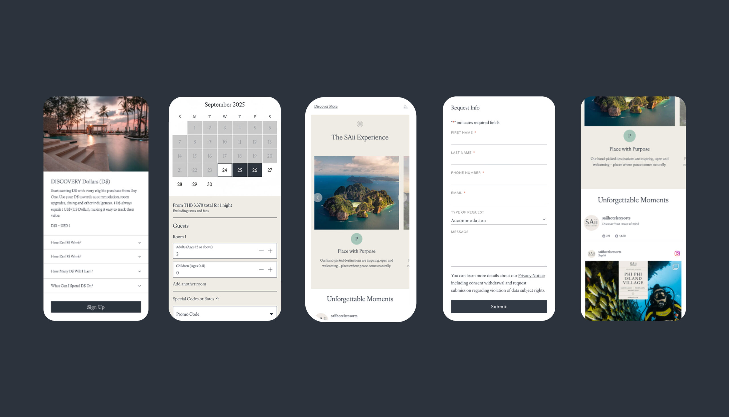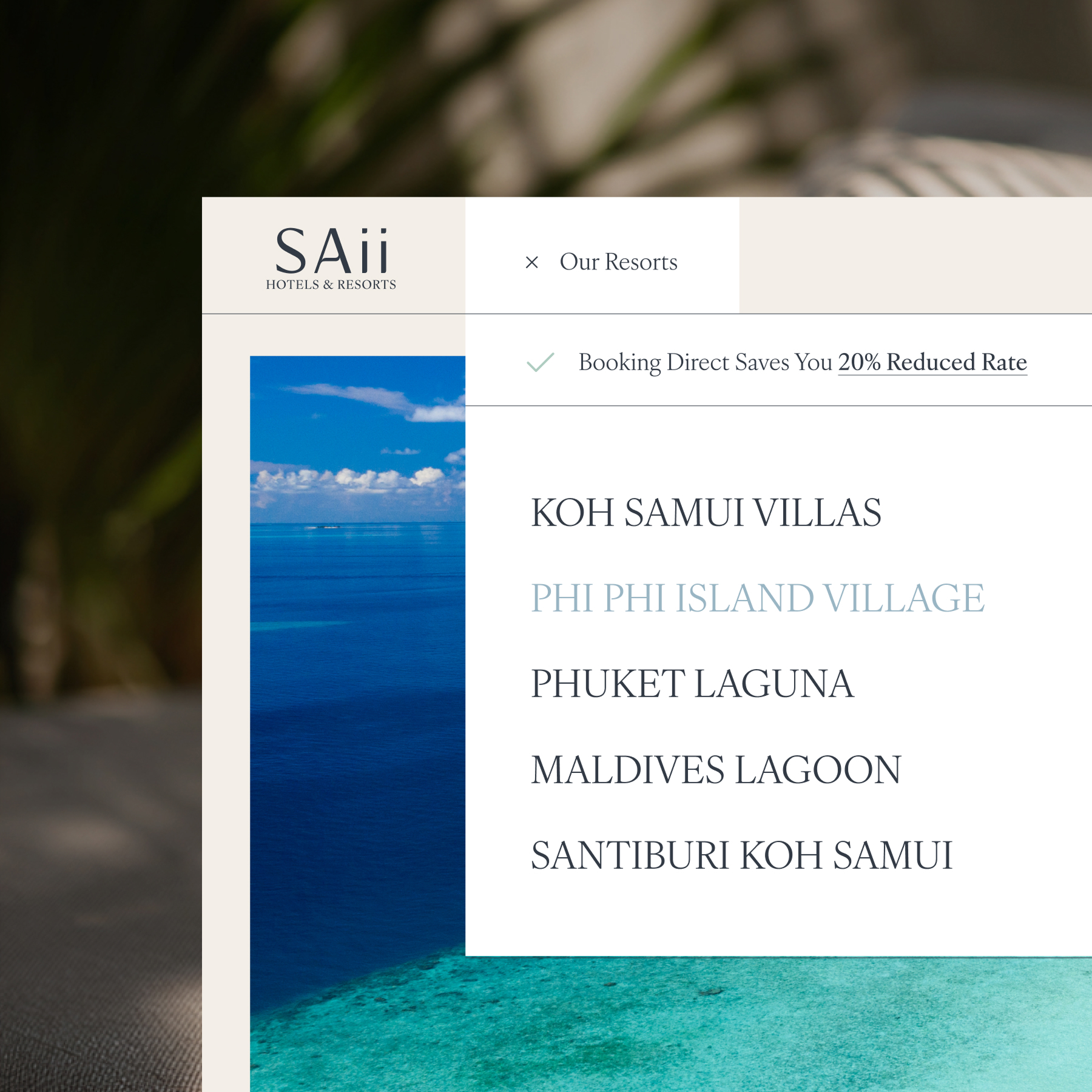 Placeworks joined the project in 2017, ahead of the resort’s launch. Our goal was to design an online experience that reflected the tactile, sensory world of SAii – one that felt intuitive and alive, not templated or transactional.