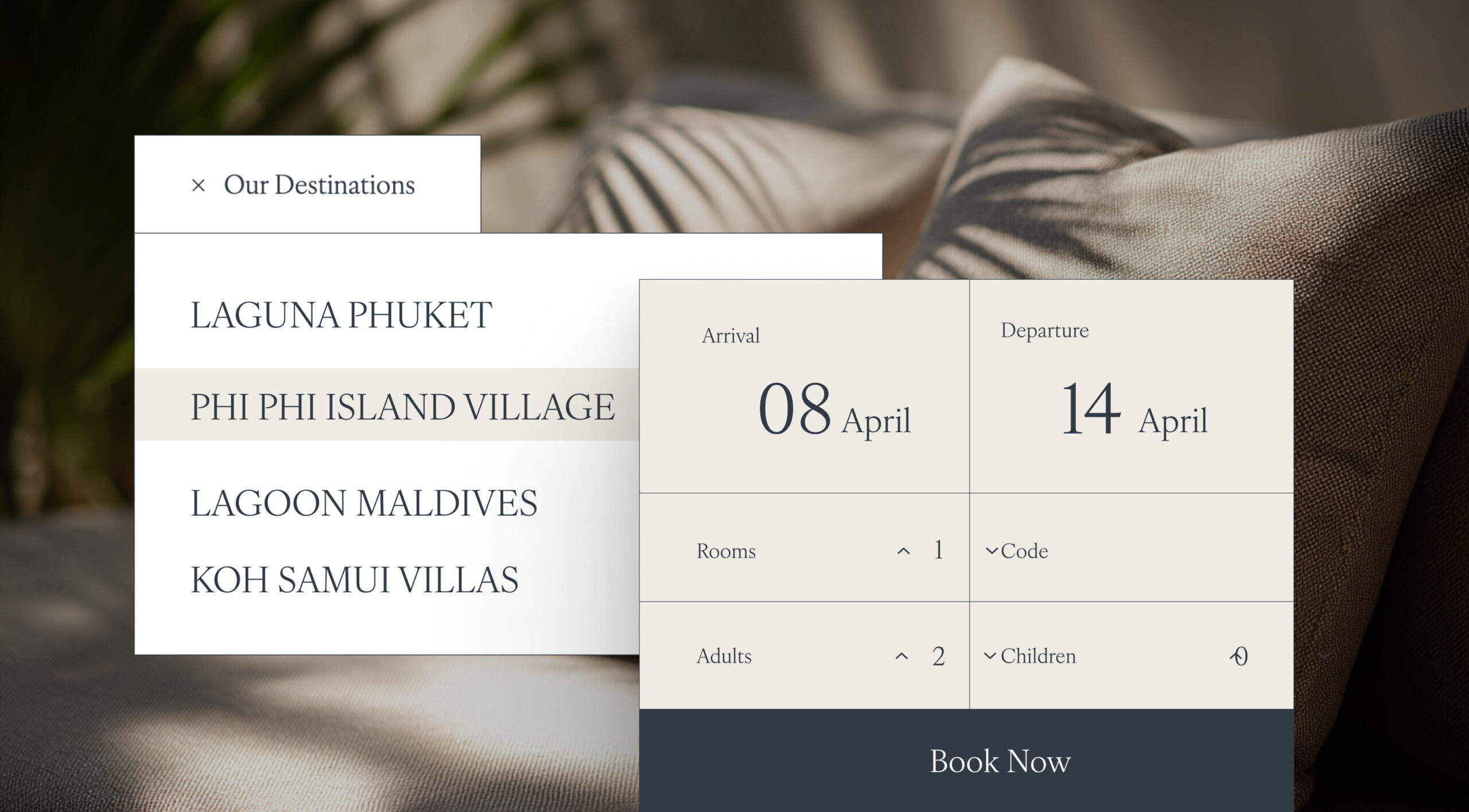 We developed a flexible digital identity system that could evolve with the brand: vivid visuals, generous spacing, and a tone that balances tropical warmth with clarity of communication. The website was built on a super-speedy, SEO-optimised CMS, allowing the marketing team to update and evolve the experience in real time as the resort came to life.