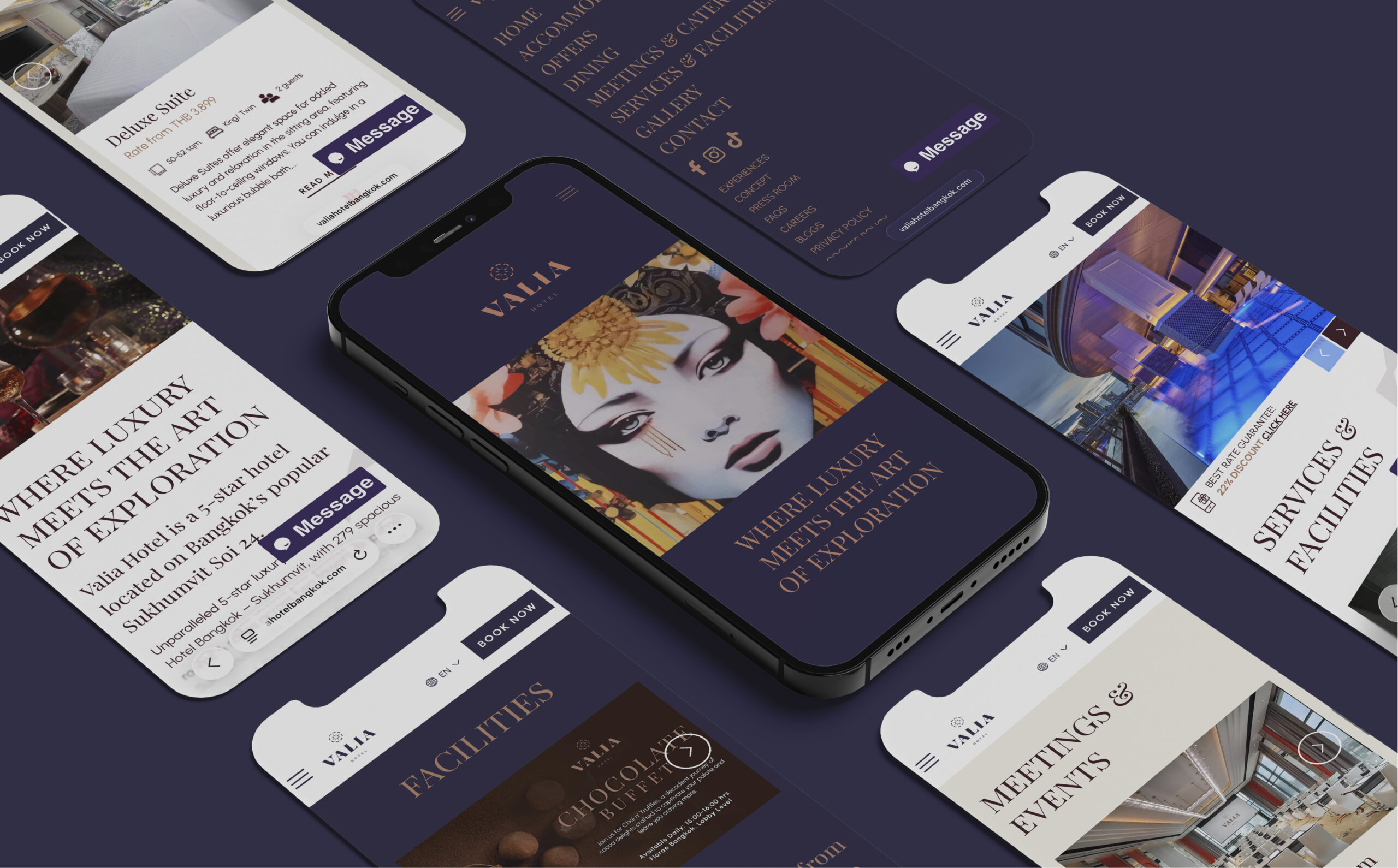 Valia is a 5-star hotel in the heart of Sukhumvit, packaging oriental elegance with contemporary luxury through a Silk Route inspired concept. 2 years after launch we revisited the digital branding with the aim of upscaling the brand perception, improving the online experience, and converting browsers into direct bookers.