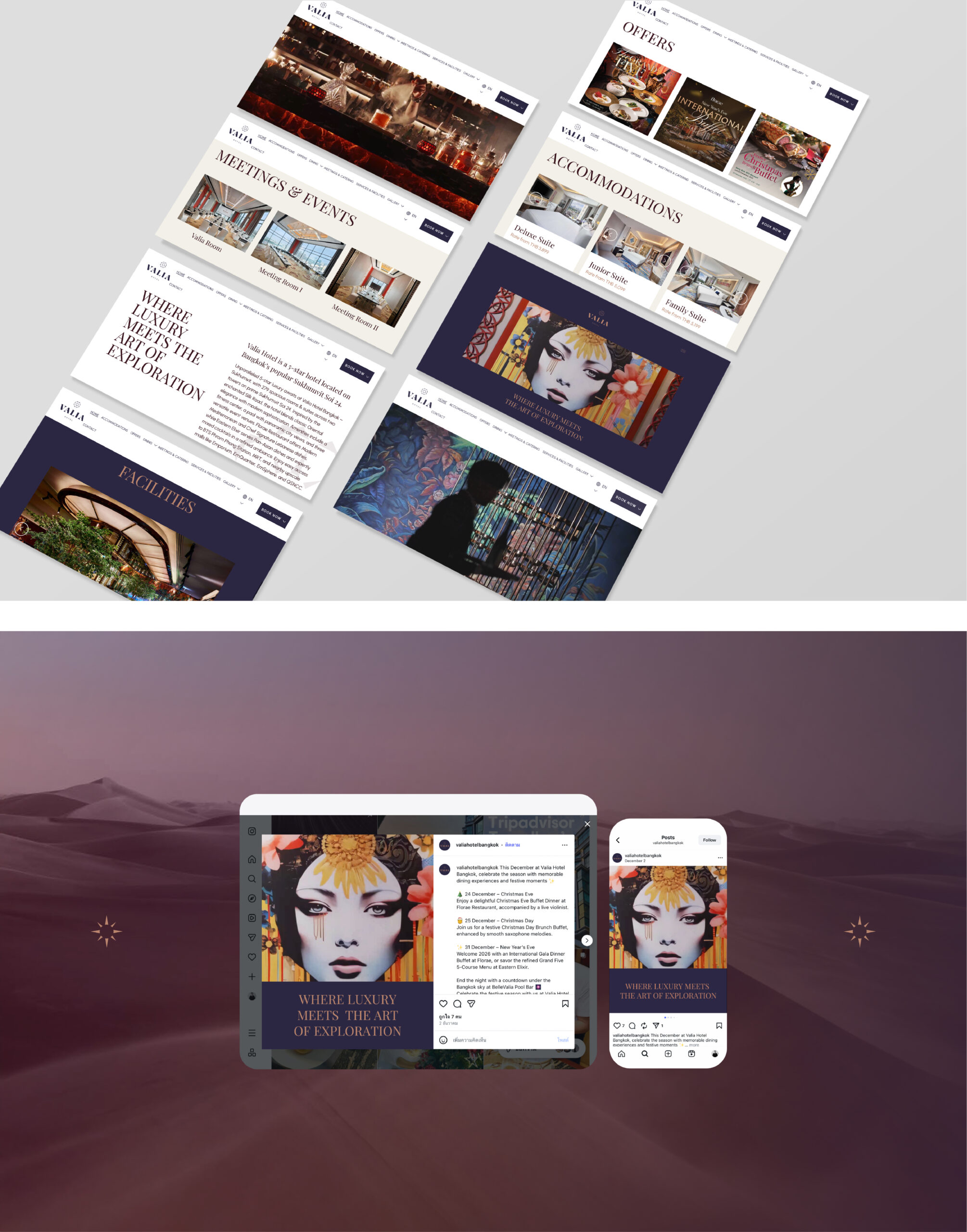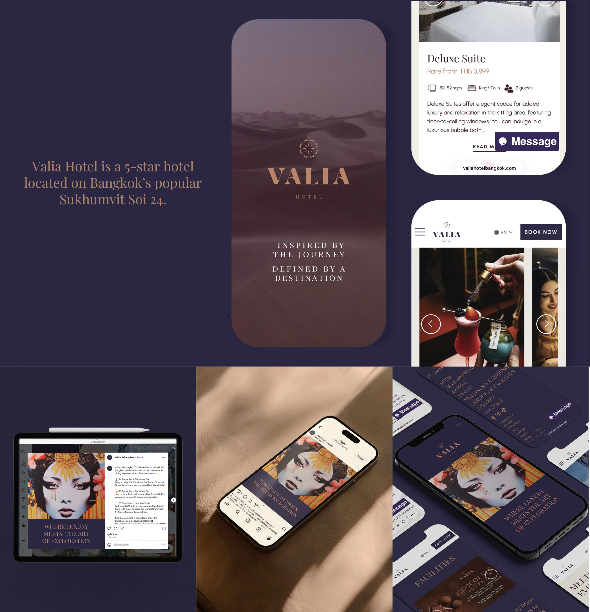 Valia is a 5-star hotel in the heart of Sukhumvit, packaging oriental elegance with contemporary luxury through a Silk Route inspired concept. 2 years after launch we revisited the digital branding with the aim of upscaling the brand perception, improving the online experience, and converting browsers into direct bookers.