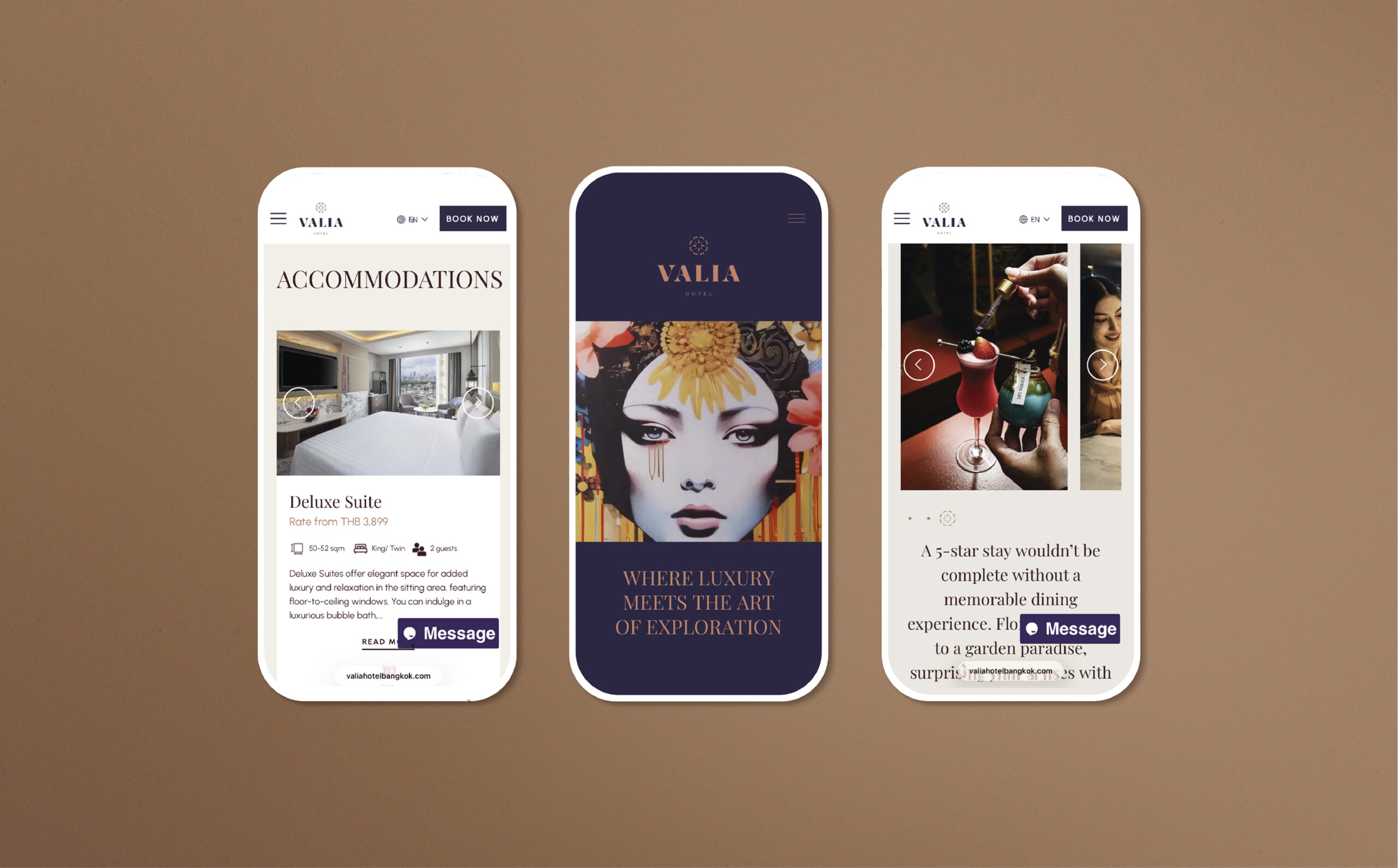 We approached Valia’s site with equal parts strategy and storytelling. Every detail – from the color palette to the written tone of voice – was crafted to reflect the property’s upscale, tranquil atmosphere.